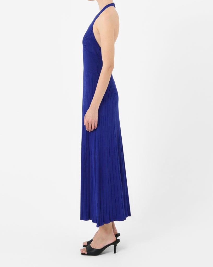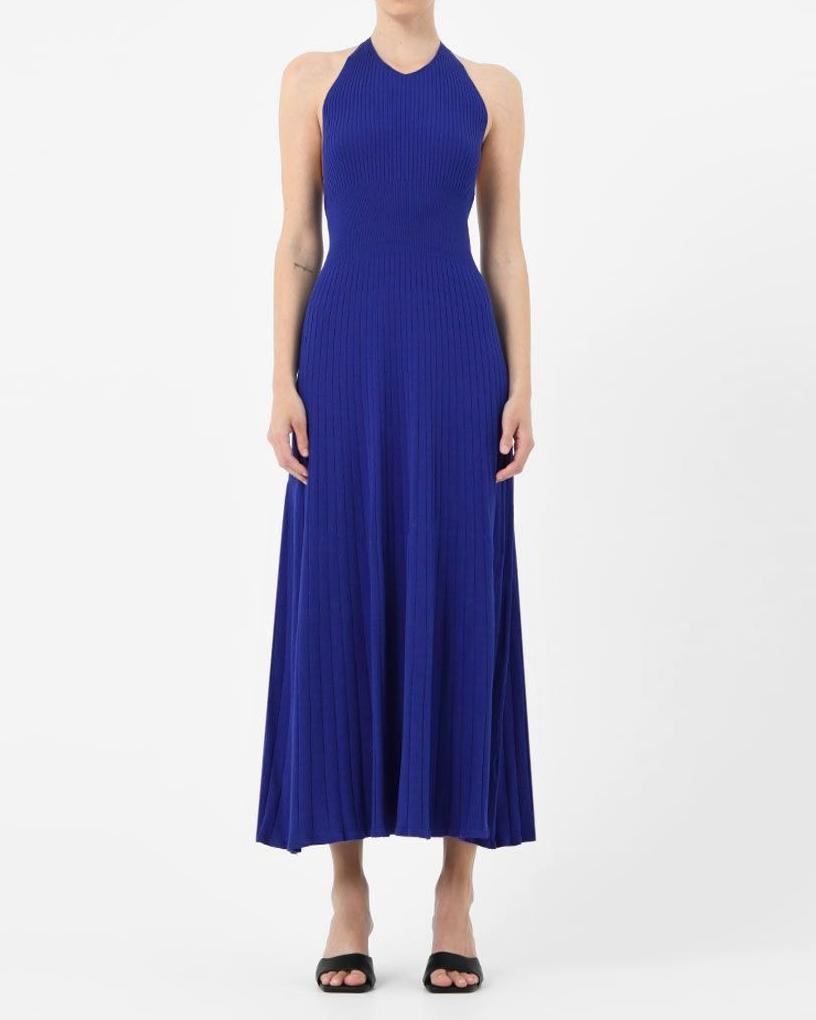 Designed in a textured ribbed knit, and with a simple and classic silhouette, the Halter Neck Knit Dress makes getting ready effortless. Draped a coat over the shoulders and heels for a chic look.