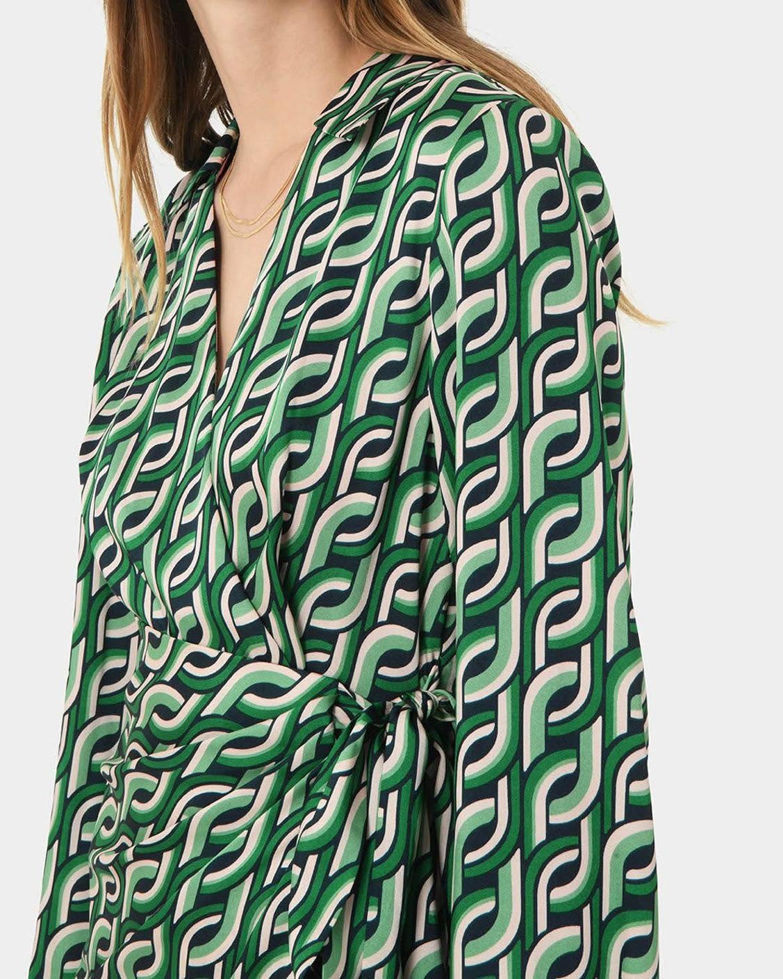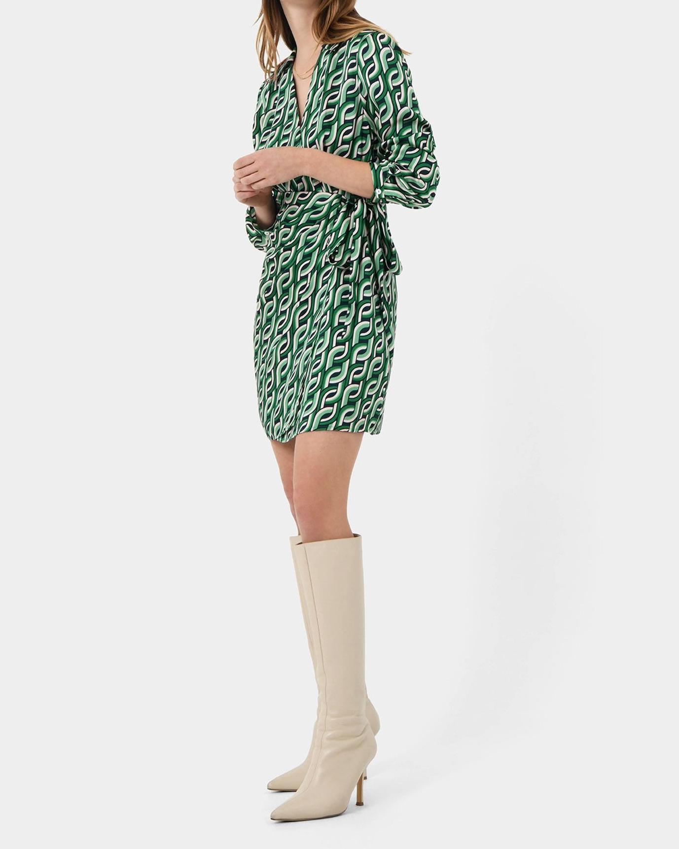 A fusion of contemporary style and classic elegance, the Printed Mini Wrap Dress is a dress of captivation and sophistication.