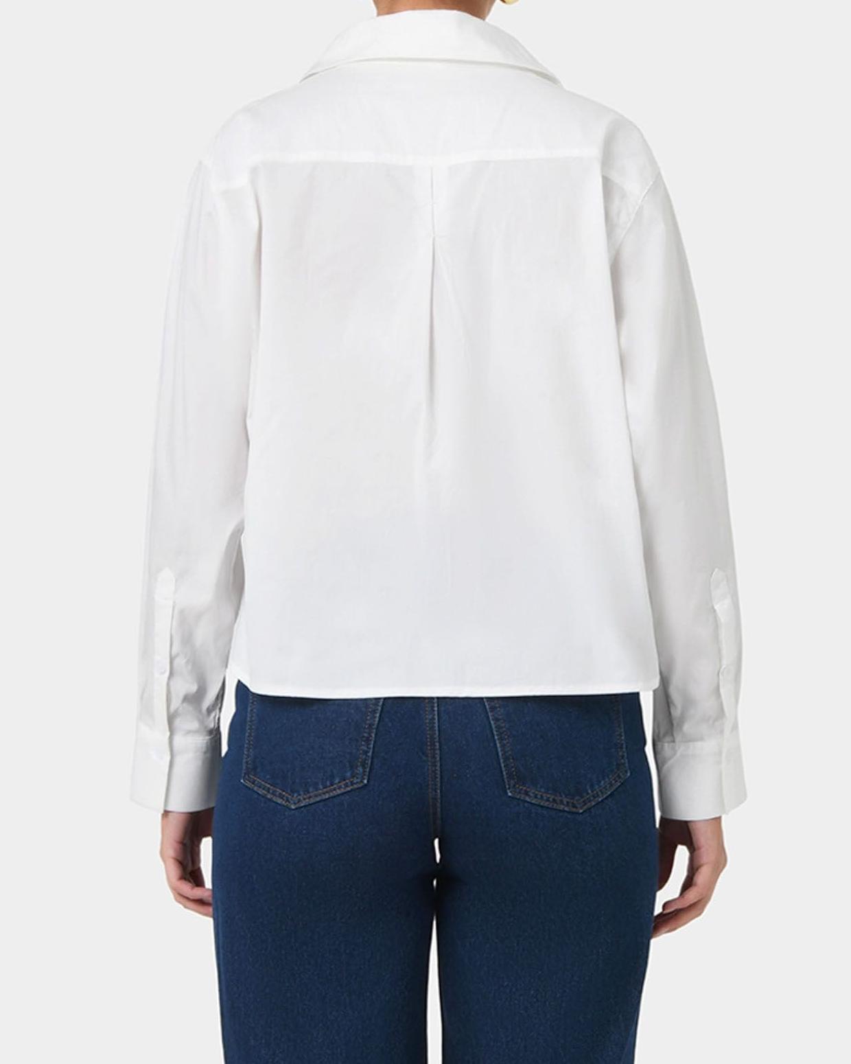 Introducing the Pleated Crop Shirt, it is crafted from a lightweight cotton blend for comfortable wear. The relaxed-fit top features a cropped length and long sleeves, creating a versatile balance that makes it a staple for elevated casual styling.