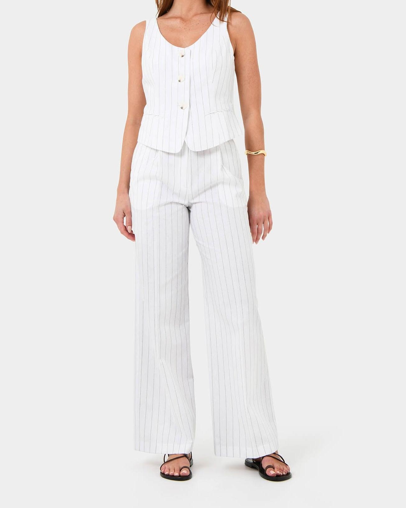Sleek and structured, the Stripe Cotton Blend Pants offer both style and comfort. The breathable cotton blend and neutral stripes make it an easy player in your new season wardrobe.